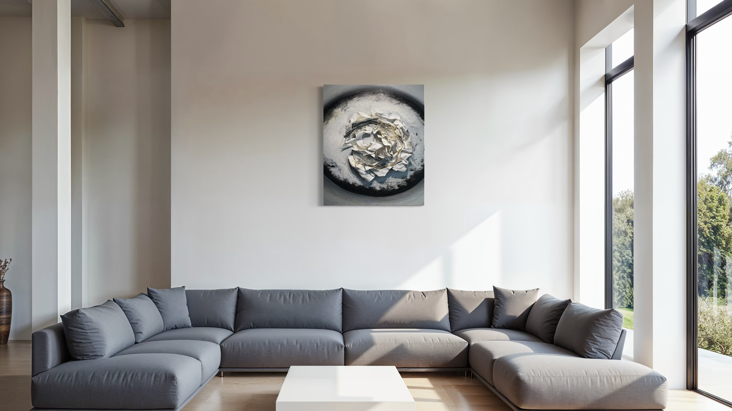 Based on my architectural experience, I explore relief and folds not only as shapes, but as breathing surfaces. In my current practice, monochrome and texture converge to create spaces of stillness, where light reveals traces of contained energy.